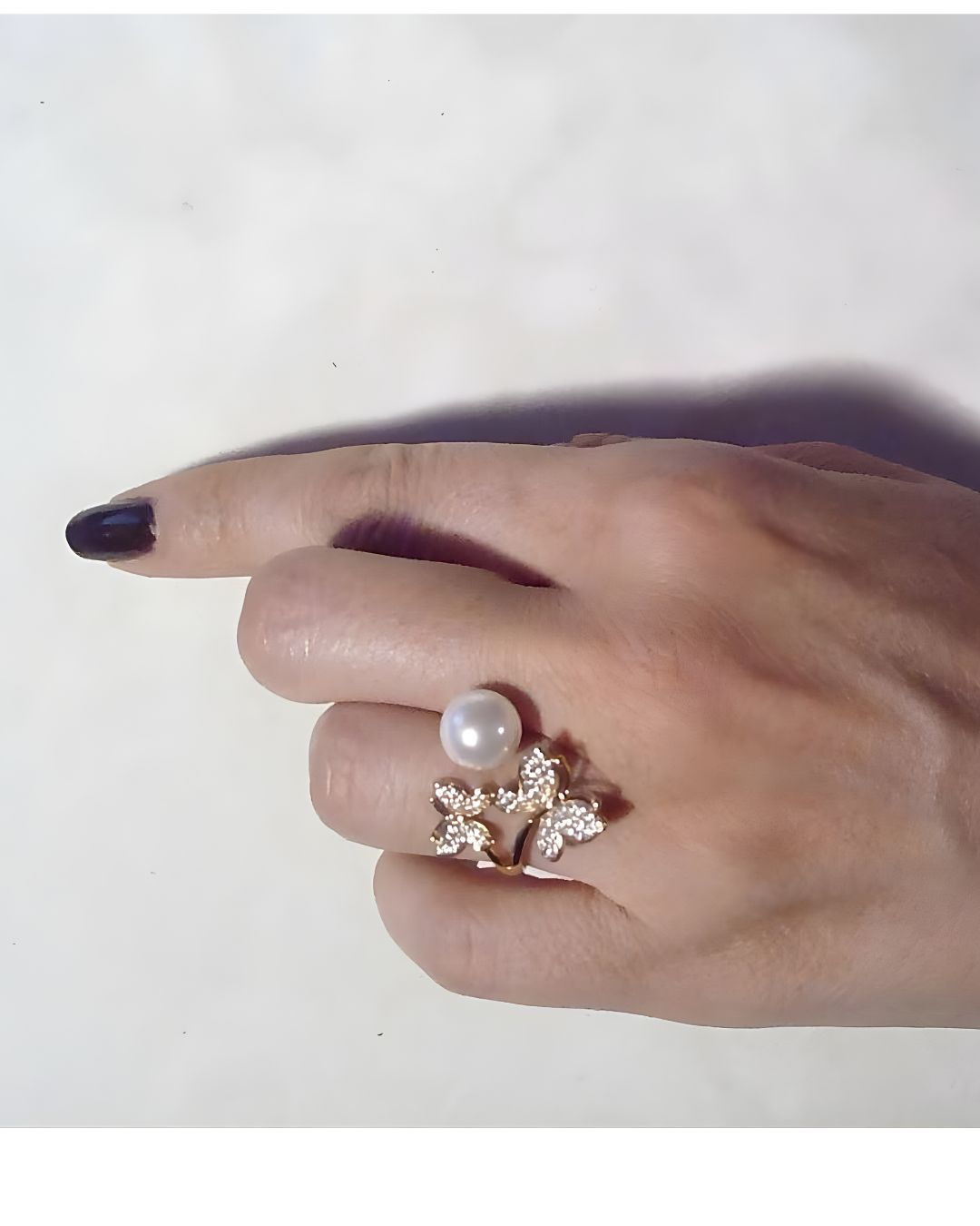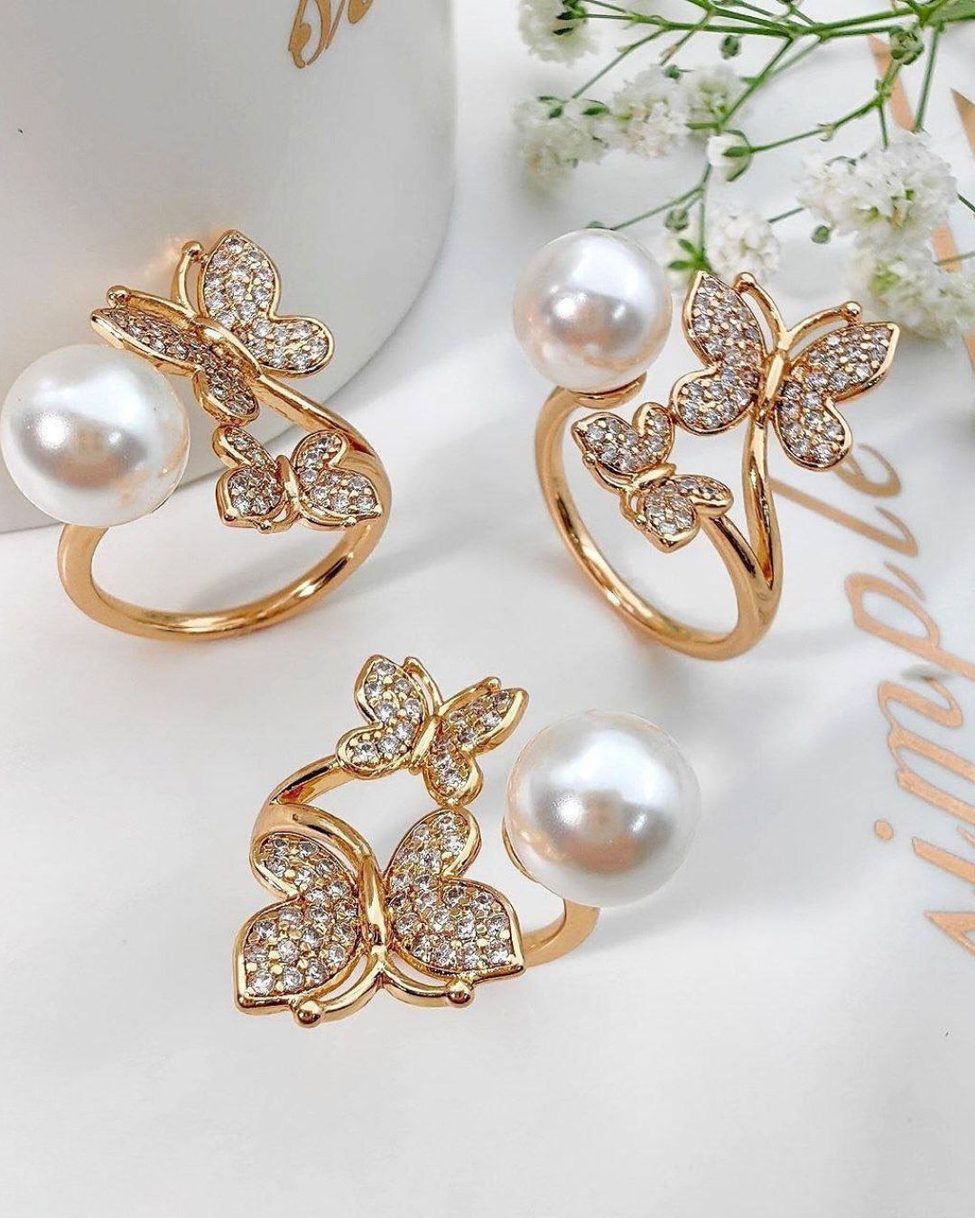 انگشتر زنانه طلایی فانتزی طرح پروانه و مرواریدبا نگین های سواروسکی برند ژوپینگ در نوروژ اکسسوری