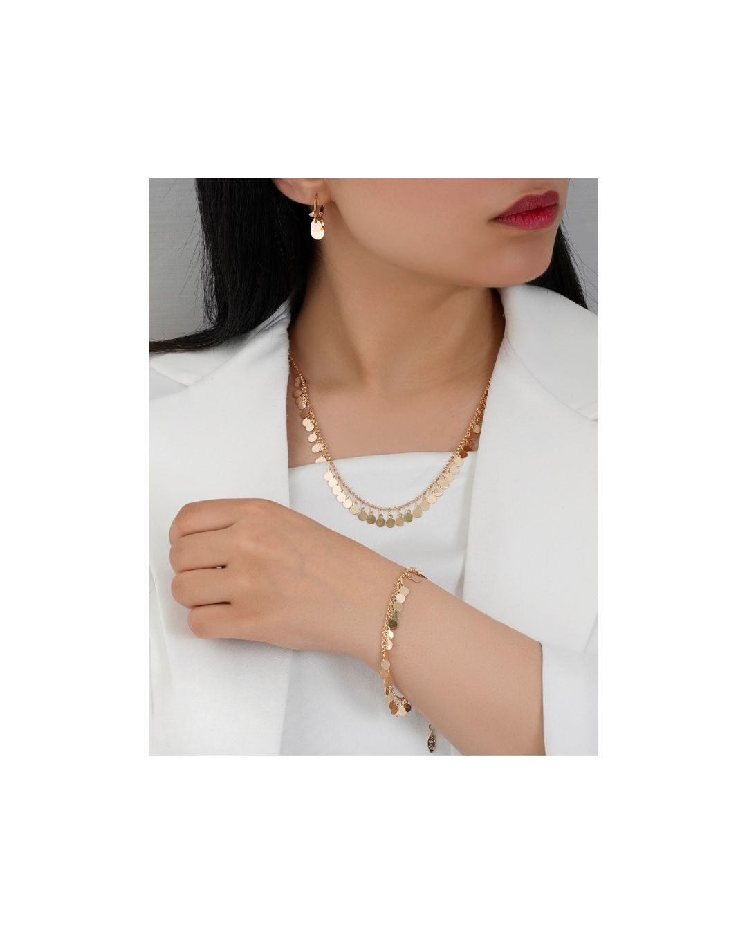 • ست گردنبند و گوشواره و دستبند زنانه مدل شیک طلایی برند YSX با شرابه های پولکی آینه ای و گوشواره های حلقه ای در نوروژ اکسسوری