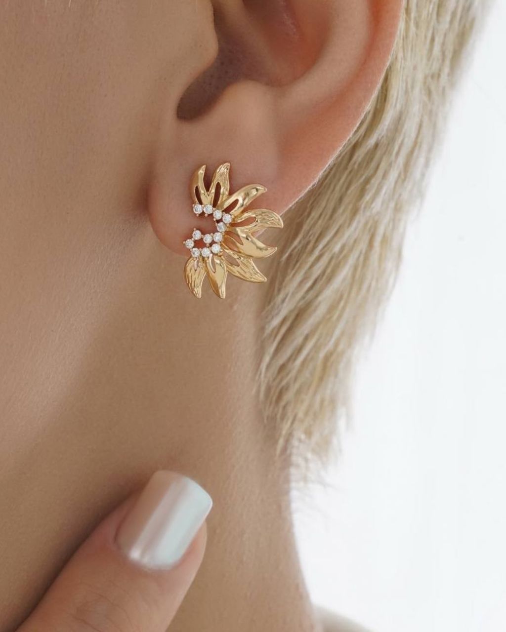 گوشواره میخی طلایی طرح خورشید با نگین های سواروسکی برند ژوپینگ در نوروژ اکسسوری