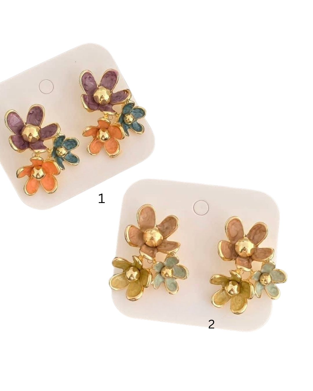گوشواره زنانه فشن میخی طرح سه گل مینا کاری رنگی و برند ترک در نوروژ اکسسوری