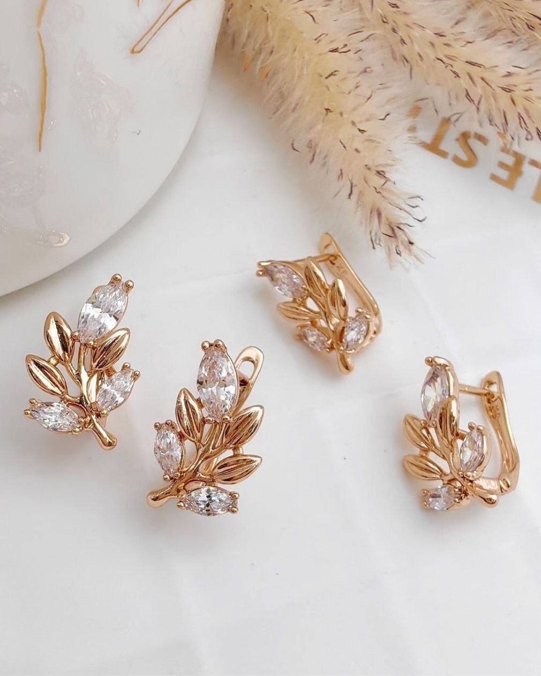گوشواره زنانه کلیپسی طرح خوشه برگ طلایی و نگین های مارکیز سواروسکی برند ژوپینگ در نوروژ اکسسوری